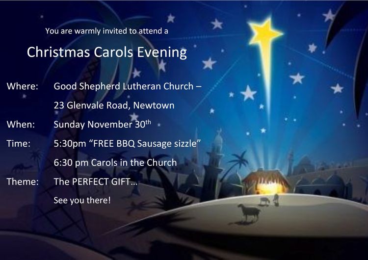 Good Shepherd Lutheran Church will be having their Christmas Carols on Sunday, 30 November. Please see the flyer below for more information.